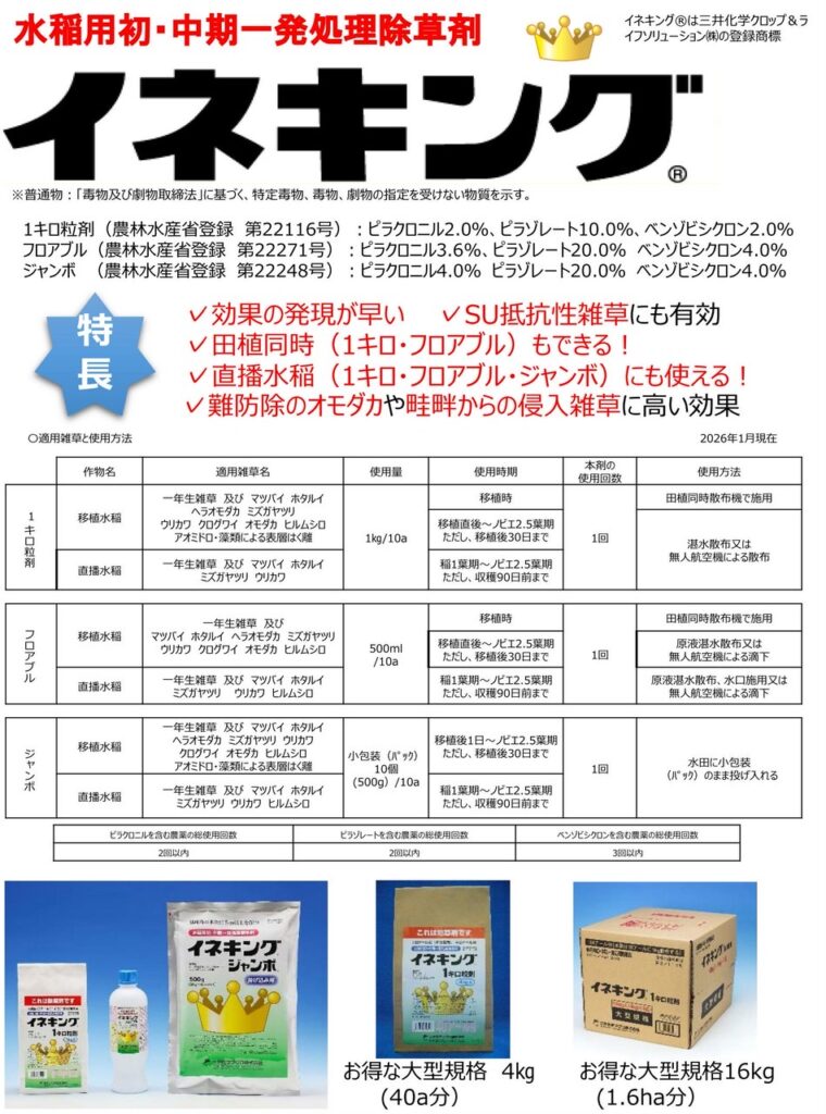 今回は水稲におすすめの除草剤『イネキング』と『流星』をご紹介します!